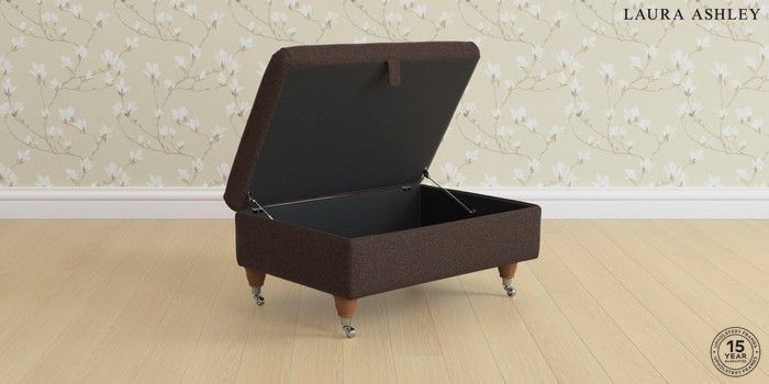 7.3.8 Buy Ambersham by Laura Ashley Storage Footstool Harley Chestnut Brown Low Chrome Castor - Teak from the Next UK online shop