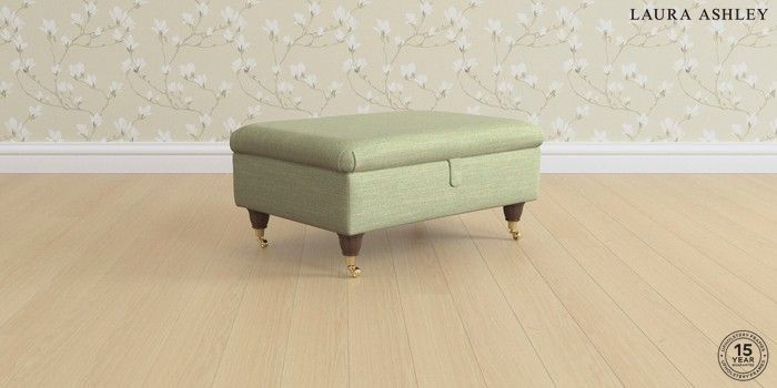 7.0.3 Buy Ambersham by Laura Ashley Storage Footstool Kinsham Hedgerow Green Low Brass Castor - Chestnut from the Next UK online shop Click here to use our accessible website