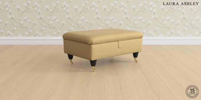 7.0.3 Buy Ambersham by Laura Ashley Storage Footstool Kinsham Ochre Yellow Low Brass Castor - Black from the Next UK online shop Click here to use our accessible website