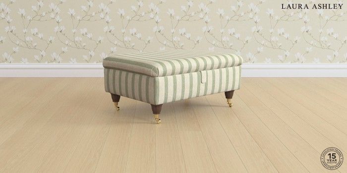 7.0.3 Buy Ambersham by Laura Ashley Storage Footstool Kinsham Stripe Hedgerow Green Low Brass Castor - Chestnut from the Next UK online shop Click here to use our accessible website