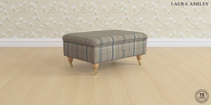 7.0.3 Buy Ambersham by Laura Ashley Storage Footstool Longstowe Check French Grey Low Brass Castor - Light Oak from the Next UK online shop Click here to use our accessible website