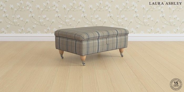 7.0.3 Buy Ambersham by Laura Ashley Storage Footstool Longstowe Check French Grey Low Chrome Castor - Light Oak from the Next UK online shop Click here to use our accessible website