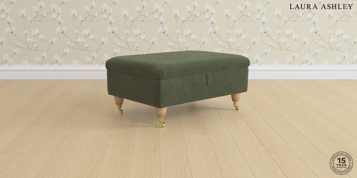 7.0.3 Buy Ambersham by Laura Ashley Storage Footstool Lundar Chenille Ivy Green Low Brass Castor - Light Oak from the Next UK online shop Click here to use our accessible website