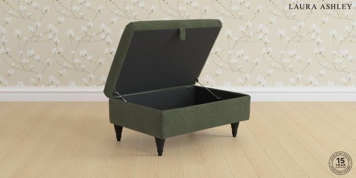 7.3.8 Buy Ambersham by Laura Ashley Storage Footstool Lundar Chenille Ivy Green Low Turned - Black from the Next UK online shop