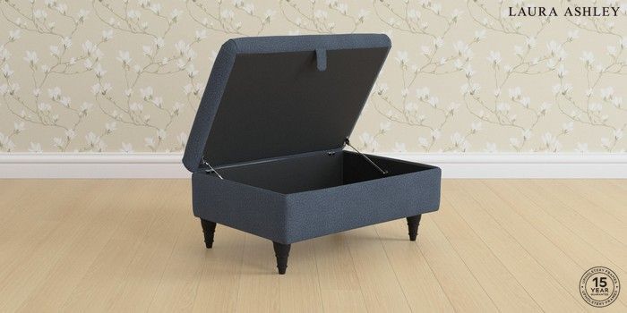 7.3.8 Buy Ambersham by Laura Ashley Storage Footstool Lundar Chenille Navy Blue Low Turned - Black from the Next UK online shop