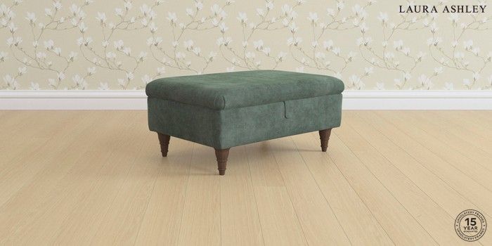 7.0.3 Buy Ambersham by Laura Ashley Storage Footstool Nantmor Fern Green Low Turned - Chestnut from the Next UK online shop Click here to use our accessible website