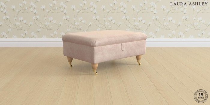7.0.3 Buy Ambersham by Laura Ashley Storage Footstool Orla Chalk Pink Low Brass Castor - Light Oak from the Next UK online shop Click here to use our accessible website