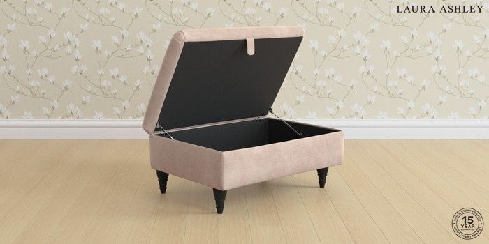 7.3.8 Buy Ambersham by Laura Ashley Storage Footstool Orla Chalk Pink Low Turned - Black from the Next UK online shop