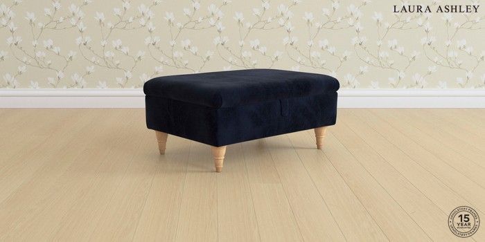 7.0.3 Buy Ambersham by Laura Ashley Storage Footstool Orla Midnight Navy Low Turned - Light Oak from the Next UK online shop Click here to use our accessible website