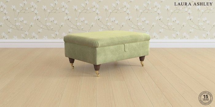 7.0.3 Buy Ambersham by Laura Ashley Storage Footstool Orla Pale Hedgerow Green Low Brass Castor - Chestnut from the Next UK online shop Click here to use our accessible website