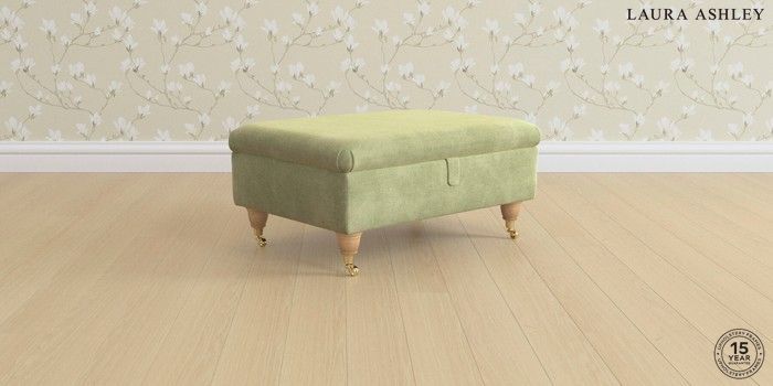 7.0.3 Buy Ambersham by Laura Ashley Storage Footstool Orla Pale Hedgerow Green Low Brass Castor - Light Oak from the Next UK online shop Click here to use our accessible website