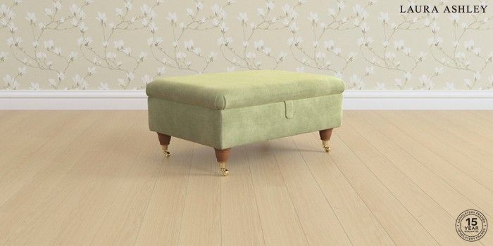 7.0.3 Buy Ambersham by Laura Ashley Storage Footstool Orla Pale Hedgerow Green Low Brass Castor - Teak from the Next UK online shop Click here to use our accessible website