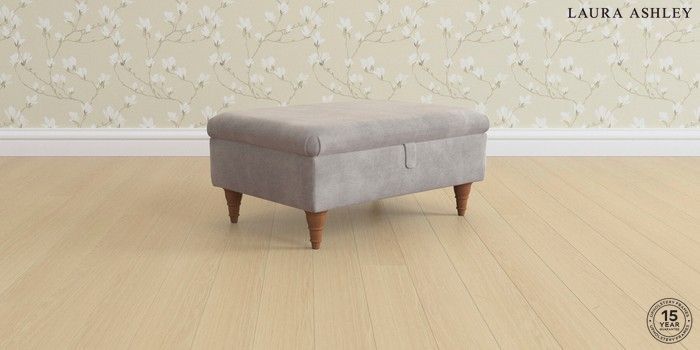 7.0.3 Buy Ambersham by Laura Ashley Storage Footstool Orla Pale Steel Grey Low Turned - Teak from the Next UK online shop Click here to use our accessible website