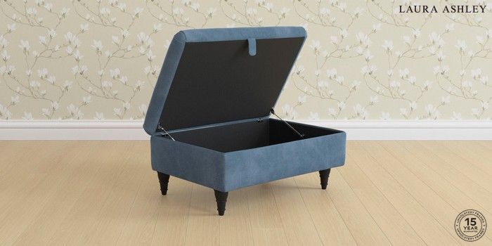 7.3.8 Buy Ambersham by Laura Ashley Storage Footstool Orla Seaspray Blue Low Turned - Black from the Next UK online shop