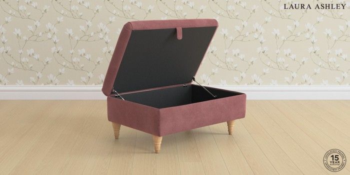 7.3.8 Buy Ambersham by Laura Ashley Storage Footstool Peyton Plum Purple Low Turned - Light Oak from the Next UK online shop