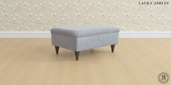 7.0.3 Buy Ambersham by Laura Ashley Storage Footstool Peyton Powder Blue Low Turned - Chestnut from the Next UK online shop Click here to use our accessible website