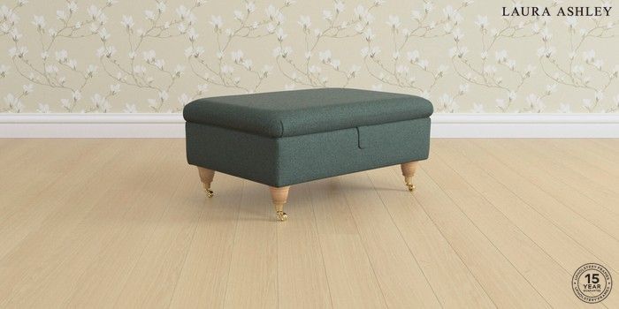 7.0.3 Buy Ambersham by Laura Ashley Storage Footstool Wooton Forest Green Low Brass Castor - Light Oak from the Next UK online shop Click here to use our accessible website