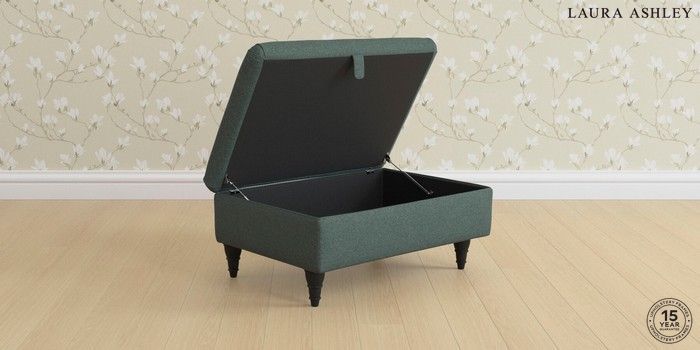 7.3.8 Buy Ambersham by Laura Ashley Storage Footstool Wooton Forest Green Low Turned - Black from the Next UK online shop