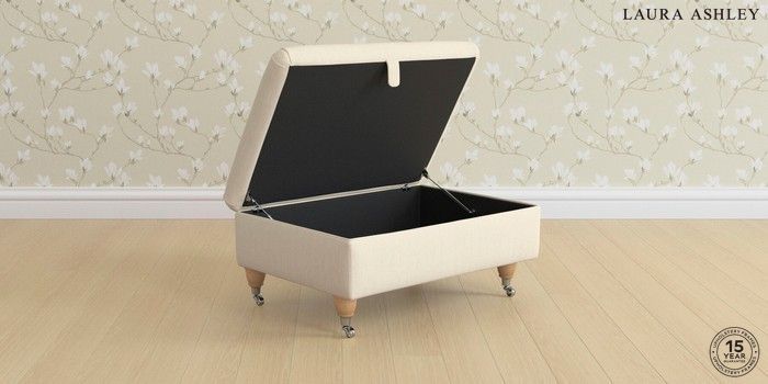 7.3.8 Buy Ambersham by Laura Ashley Storage Footstool Wooton Natural Low Chrome Castor - Light Oak from the Next UK online shop