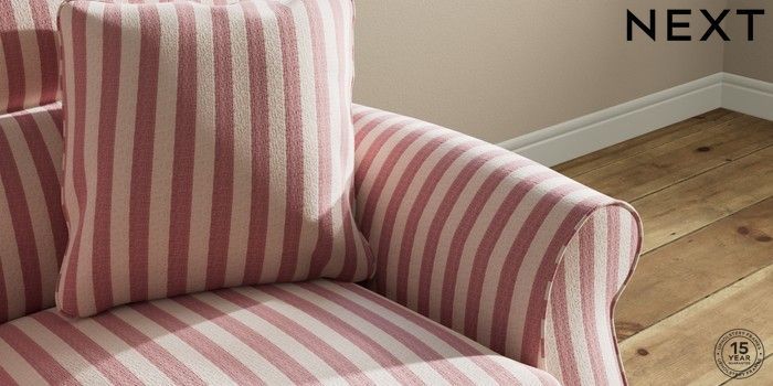 7.3.1 Buy Ashford Highback 2 Seater Small Sofa Bold Chenille Stripe Dark Pink Castor - Light from the Next UK online shop