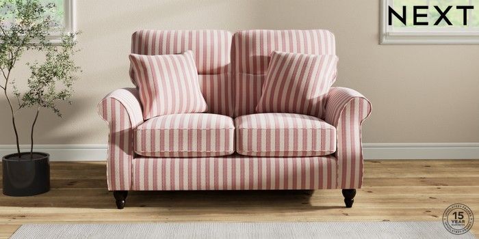 7.2.6 Buy Ashford Highback 2 Seater Small Sofa Bold Chenille Stripe Dark Pink Low Turned - Dark from the Next UK online shop Click here to use our accessible website