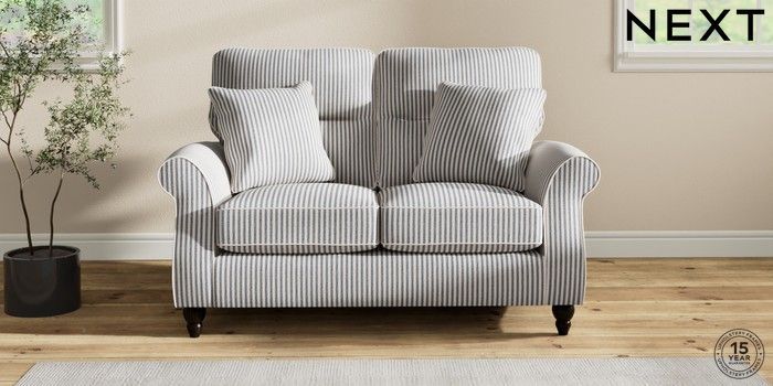 6.12.1 Buy Ashford Highback 2 Seater Small Sofa Chenille Stripe Slate Blue Low Turned - Dark from the Next UK online shop Click here to use our accessible website