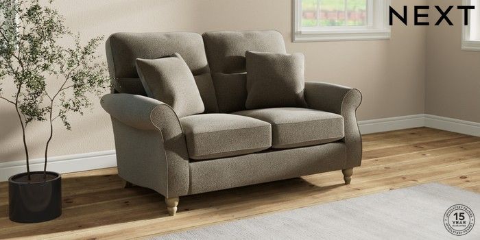 6.12.1 Buy Ashford Highback 2 Seater Small Sofa Chunky Marl Light Olive Green Low Turned - Light from the Next UK online shop Click here to use our accessible website