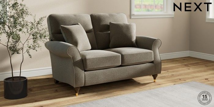 6.12.1 Buy Ashford Highback 2 Seater Small Sofa Chunky Marl Light Olive Green Modern Turned Metal Cap - Mid from the Next UK online shop Click here to use our accessible website