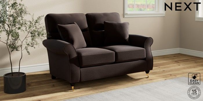 6.12.1 Buy Ashford Highback 2 Seater Small Sofa Fine Chenille Easy Clean Chocolate Brown Castor - Dark from the Next UK online shop Click here to use our accessible website