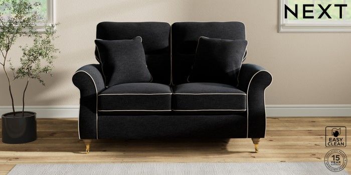 7.3.1 Buy Ashford Highback 2 Seater Small Sofa Fine Chenille with Contrast Black and Oyster Castor - Light from the Next UK online shop Click here to use our accessible website