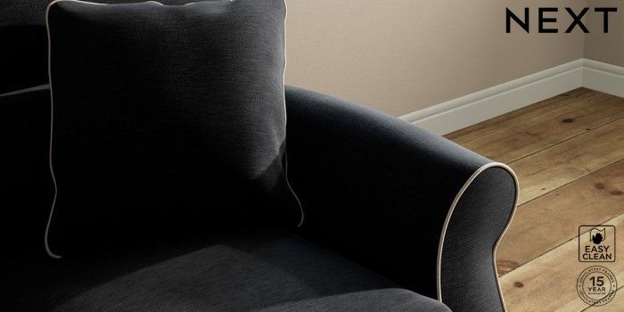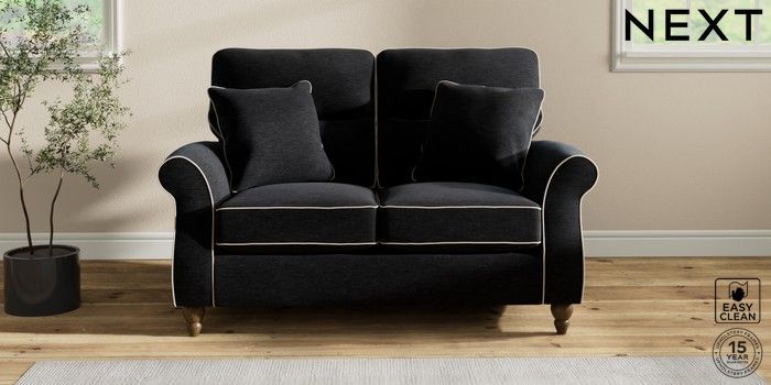 7.3.1 Buy Ashford Highback 2 Seater Small Sofa Fine Chenille with Contrast Black and Oyster Low Turned - Mid from the Next UK online shop Click here to use our accessible website