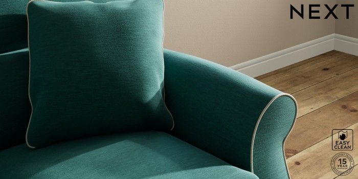 7.3.1 Buy Ashford Highback 2 Seater Small Sofa Fine Chenille with Contrast Dark Juniper Green and Oyster Low Turned - Dark from the Next UK online shop Click here to use our accessible website
