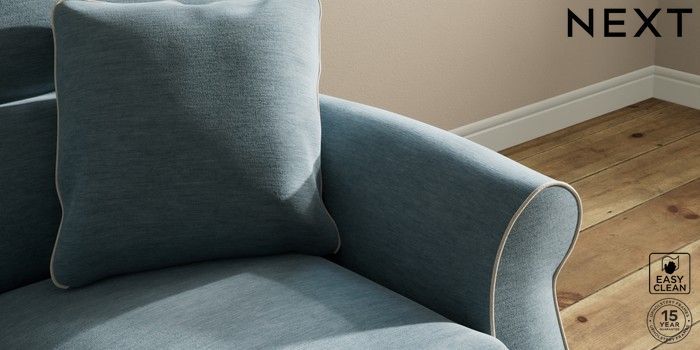 7.3.1 Buy Ashford Highback 2 Seater Small Sofa Fine Chenille with Contrast Mid Blue and Oyster Castor - Dark from the Next UK online shop Click here to use our accessible website