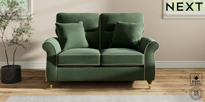 7.3.1 Buy Ashford Highback 2 Seater Small Sofa Fine Chenille with Contrast Mid Khaki Green and Oyster Castor - Mid from the Next UK online shop Click here to use our accessible website