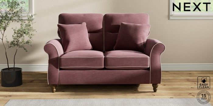 7.3.1 Buy Ashford Highback 2 Seater Small Sofa Fine Chenille with Contrast Mid Mulberry Purple and Oyster Low Turned - Mid from the Next UK online shop Click here to use our accessible website