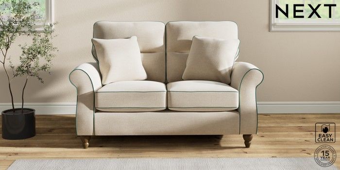 7.3.1 Buy Ashford Highback 2 Seater Small Sofa Fine Chenille with Contrast Oyster and Dark Juniper Green Low Turned - Mid from the Next UK online shop Click here to use our accessible website