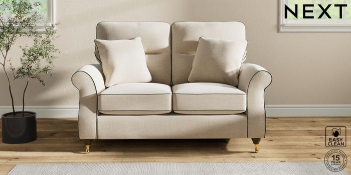 7.3.1 Buy Ashford Highback 2 Seater Small Sofa Fine Chenille with Contrast Oyster and Mid Khaki Green Castor - Mid from the Next UK online shop Click here to use our accessible website