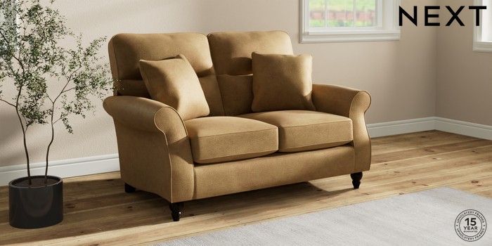 6.12.1 Buy Ashford Highback 2 Seater Small Sofa Luxe Chenille Honey Yellow Low Turned - Dark from the Next UK online shop Click here to use our accessible website
