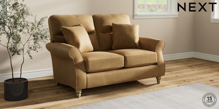 6.12.1 Buy Ashford Highback 2 Seater Small Sofa Luxe Chenille Honey Yellow Low Turned - Light from the Next UK online shop Click here to use our accessible website