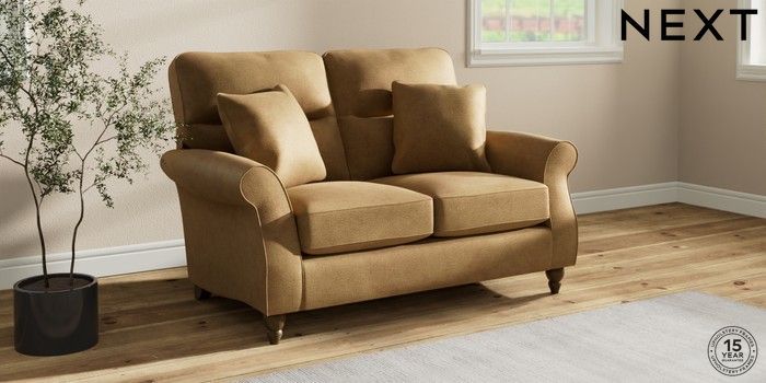 6.12.1 Buy Ashford Highback 2 Seater Small Sofa Luxe Chenille Honey Yellow Low Turned - Mid from the Next UK online shop Click here to use our accessible website