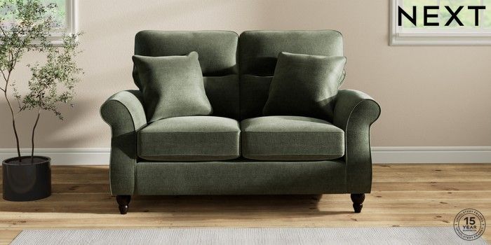 6.12.1 Buy Ashford Highback 2 Seater Small Sofa Luxe Chenille Mid Green Low Turned - Dark from the Next UK online shop Click here to use our accessible website