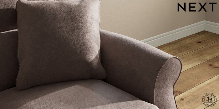 6.12.1 Buy Ashford Highback 2 Seater Small Sofa Luxe Chenille Mink Brown Castor - Dark from the Next UK online shop Click here to use our accessible website