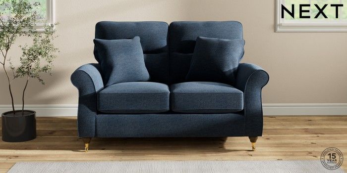 6.12.1 Buy Ashford Highback 2 Seater Small Sofa Ripple Chenille Dark Blue Castor - Mid from the Next UK online shop Click here to use our accessible website