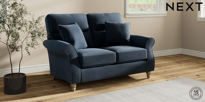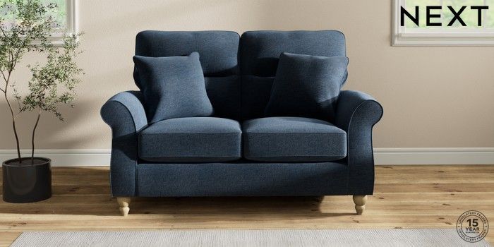 6.12.1 Buy Ashford Highback 2 Seater Small Sofa Ripple Chenille Dark Blue Low Turned - Light from the Next UK online shop Click here to use our accessible website