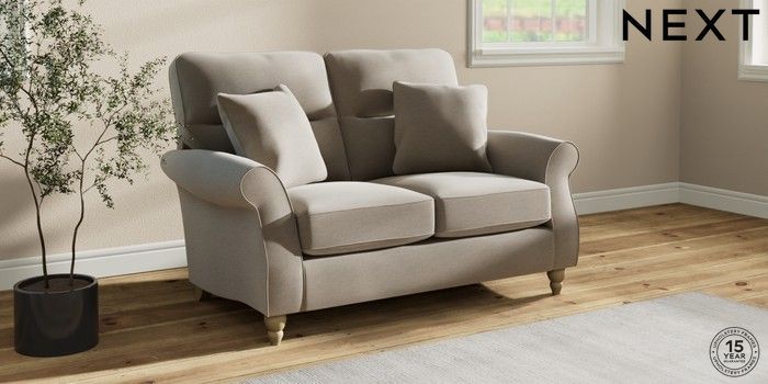6.12.1 Buy Ashford Highback 2 Seater Small Sofa Ripple Chenille Light Natural Low Turned - Light from the Next UK online shop Click here to use our accessible website