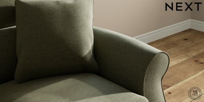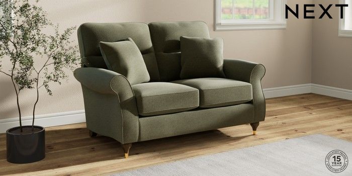 6.12.1 Buy Ashford Highback 2 Seater Small Sofa Ripple Chenille Mid Moss Green Modern Turned Metal Cap - Mid from the Next UK online shop Click here to use our accessible website