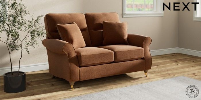 6.12.1 Buy Ashford Highback 2 Seater Small Sofa Ripple Chenille Mid Rust Brown Castor - Light from the Next UK online shop Click here to use our accessible website