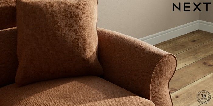6.12.1 Buy Ashford Highback 2 Seater Small Sofa Ripple Chenille Mid Rust Brown Modern Turned Metal Cap - Mid from the Next UK online shop Click here to use our accessible website