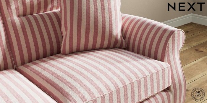 7.3.1 Buy Ashford Highback 2 Seater Sofa Bold Chenille Stripe Dark Pink Castor - Mid from the Next UK online shop