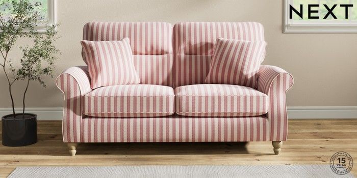 7.2.6 Buy Ashford Highback 2 Seater Sofa Bold Chenille Stripe Dark Pink Low Turned - Light from the Next UK online shop Click here to use our accessible website